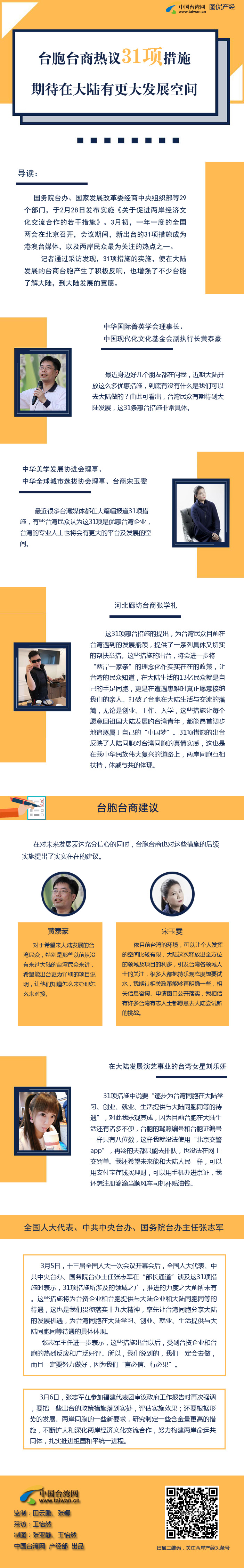 導(dǎo)讀:國(guó)務(wù)院臺(tái)辦、國(guó)家發(fā)展改革委經(jīng)商中央組織部等29個(gè)部門,于2月28日發(fā)布實(shí)施《關(guān)于促進(jìn)兩岸經(jīng)濟(jì)文化交流合作的若干措施》。3月初,一年一度的全國(guó)兩會(huì)在北京召開,會(huì)議期間,新出臺(tái)的31項(xiàng)措施成為港澳臺(tái)媒體,以及兩岸民眾最為關(guān)注的熱點(diǎn)之一。記者通過采訪發(fā)現(xiàn),31項(xiàng)措施的實(shí)施,使在大陸發(fā)展的臺(tái)商臺(tái)胞產(chǎn)生了積極反響,也增強(qiáng)了不少臺(tái)胞了解大陸,到大陸發(fā)展的意愿。