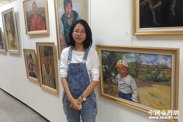廖哲琳在臺(tái)灣藝術(shù)大學(xué)學(xué)生藝?yán)犬嬚宫F(xiàn)場(chǎng)留影。(圖片來源:陜西省臺(tái)辦)