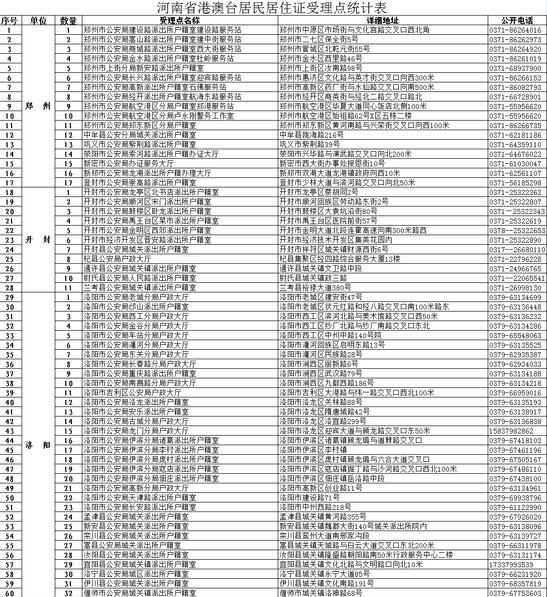 附件:《河南省港澳臺居民居住證受理點》