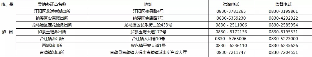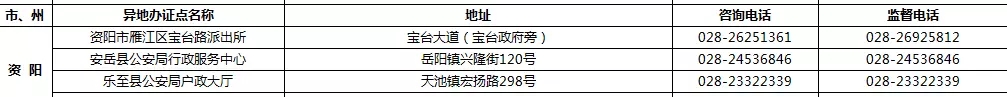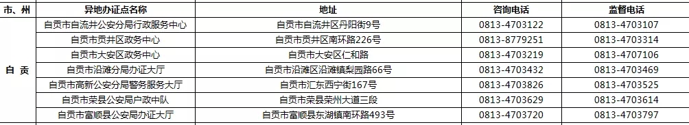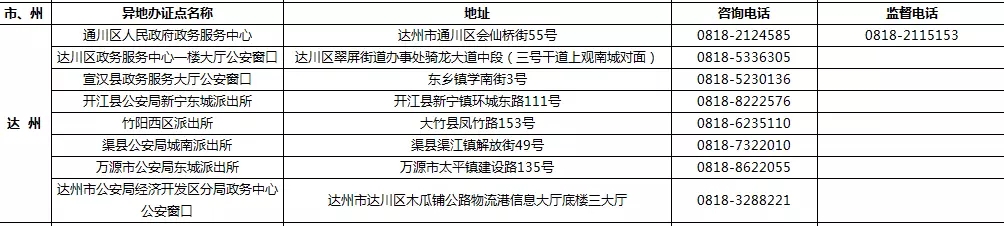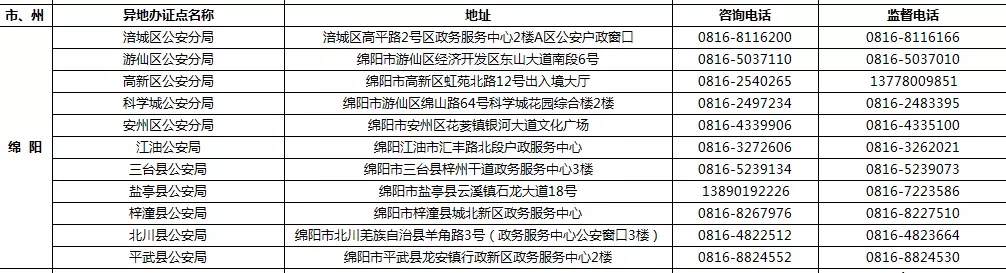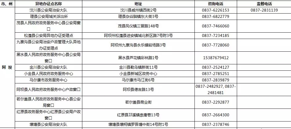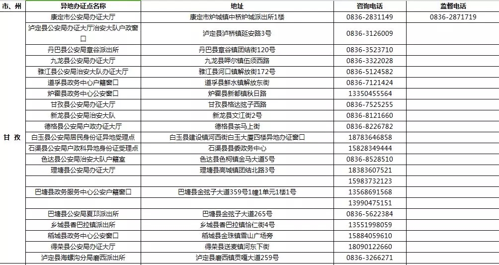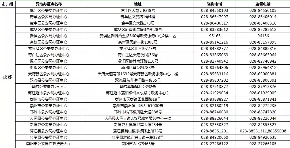 四川省港澳臺居民居住證受理點名稱、地址,咨詢及監督電話: