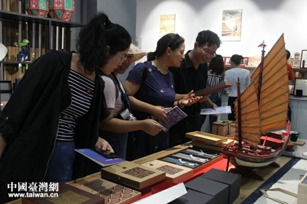 兩岸學者欣賞文創(chuàng)產(chǎn)品。(中國臺灣網(wǎng) 汪明珠 攝)