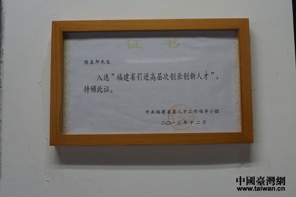陳孟邦榮獲福建省“百人計劃”企業創新人才獎。(中國臺灣網 張玲 攝)