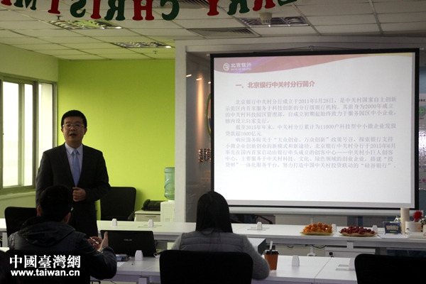 北京銀行代表向兩岸青年創客介紹資金信貸服務。(中國臺灣網 陳文韜 攝)