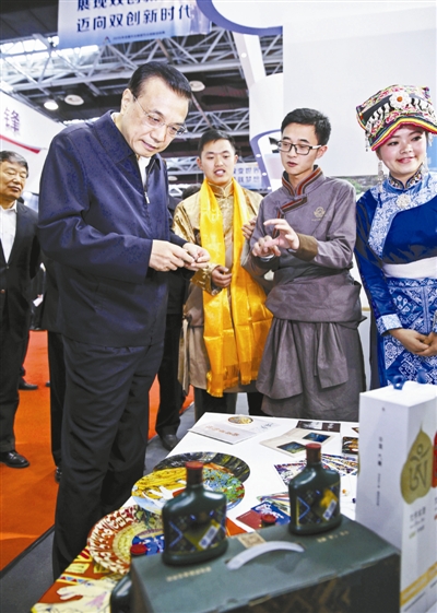 李克強對返鄉創業的藏族小伙子說,雙創不分地域、民族,不分年齡、階層。供圖/中國政府網