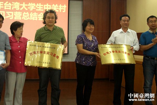 嘉賓領(lǐng)導(dǎo)為臺(tái)灣同學(xué)頒發(fā)實(shí)習(xí)證書。(中國臺(tái)灣網(wǎng) 陳文韜 攝)