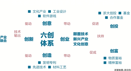 浙大創業創新教育生態系統:“六創”協同 浙報制圖:陳仰東