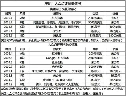 與阿里“感性”的選擇方式不同,騰訊看重美團(tuán)的,則是戰(zhàn)略地位和資本投入的回報(bào)等更加理性、經(jīng)濟(jì)的投入。根據(jù)價(jià)值兄統(tǒng)計(jì)發(fā)現(xiàn),美團(tuán)已經(jīng)融資超過(guò)57億美元(如下表格),但騰訊僅僅是從2016年1月份的這次才進(jìn)入。如果從資本回報(bào)率來(lái)說(shuō),美團(tuán)用估值180億來(lái)融資,對(duì)于精明的騰訊顯然并不劃算。那么為何騰訊依然癡情投入呢?