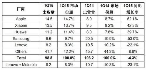 一方面原因來(lái)自于智能手機(jī)出貨量放緩:根據(jù)市場(chǎng)研究機(jī)構(gòu)IDC公布的《全球手機(jī)季度跟蹤報(bào)告》,2015年全球智能手機(jī)出貨量增幅將首次滑落至個(gè)位數(shù)。今年第一季度,中國(guó)智能手機(jī)市場(chǎng)出貨量出現(xiàn)了6年以來(lái)的首次下滑,第一季度出貨量相比去年同期下降了4.3%。