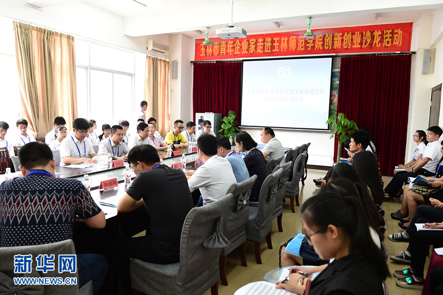 4月17日,玉林市青年企業(yè)家走入玉林師院舉辦創(chuàng)新創(chuàng)業(yè)沙龍。(溫培雅 攝)