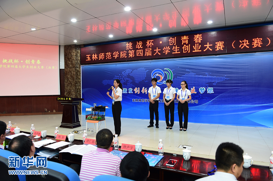 4月17日,玉林師院舉辦第四屆“挑戰杯·創青春”大學生創業大賽項目(決賽)。(劉欽明 攝)