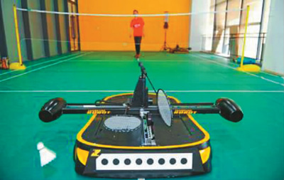 圖為來自電子科大的機器人團隊研發的智能羽毛球機器人。