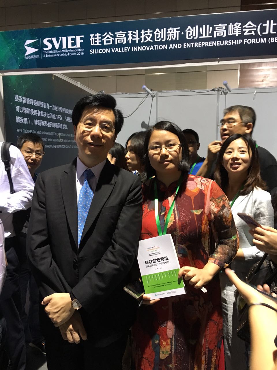 活動當天,在硅谷高創會展臺現場,創新工場董事長兼首席執行官李開復博士走到《硅谷創業思維》公益簽售會的展臺前,對王維博士的創業思維給予充分肯定,鼓勵她知行合一、共創共享,引領中國實踐教育,踐行培育龍的傳人,并與其簽名合影。