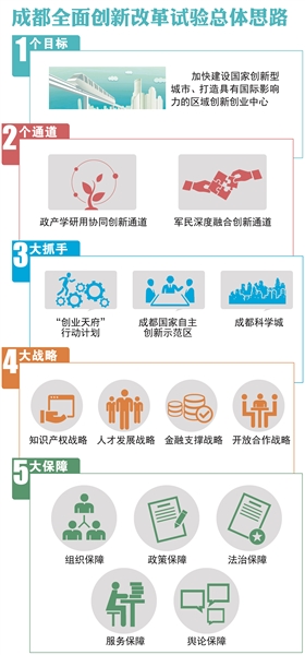 去年8月,中央決定四川依托成都、德陽、綿陽地區探索系統推進全面創新改革試驗的有效機制、模式和經驗,開展先行先試。我市按照中央和省委決策部署,大力實施創新引領行動,將全面創新改革作為全市的“一號工程”,為改革試驗確定了“一個目標、兩個通道、三大抓手、四大戰略、五大保障”的總體思路,加快建設國家創新型城市、打造具有國際影響力的區域創新創業中心。