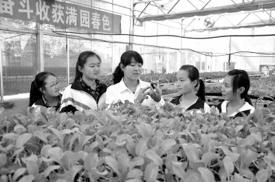 在甘肅省臨澤縣職教中心種植創業園內,該校教師顏霞正在為學生講解利用有機基質和營養液進行花卉和蔬菜育苗的相關知識。近期,甘肅省臨澤縣職教中心結合全縣大眾創業、萬眾創新工作,積極創新實踐教學機制,籌資25萬元新建了種植創業園,為種植、花卉等農學專業學生開展種子育種、花卉育苗教學和創業實訓提供了良好環境。(蘇興洲 攝影報道)