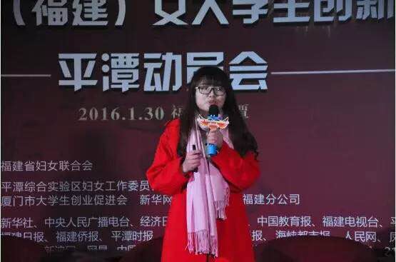 女大學生代表、福建師范大學2015屆畢業生、平潭綜合實驗區雙成教育咨詢有限公司陳小欽演講
