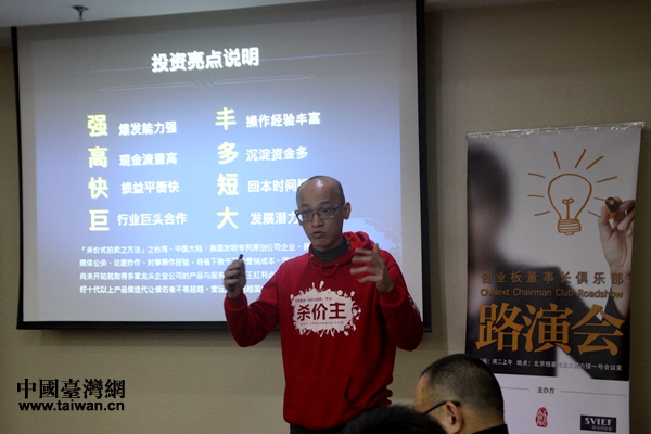 臺灣創(chuàng)業(yè)團隊“殺價王”正在進行路演。(中國臺灣網(wǎng) 袁楚 攝)