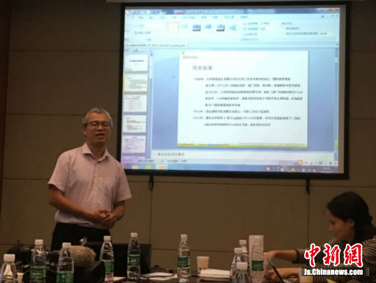 伴隨大陸創業浪潮,臺灣“白發青年”劉鴻達來到江蘇昆山,開始了人生的第三次創業。圖為劉鴻達作報告,講述昆山公司的概況。