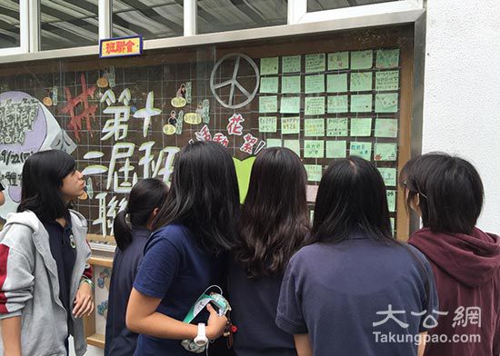 臺灣學生在看櫥窗內展示的教師節祝福語/田雯攝