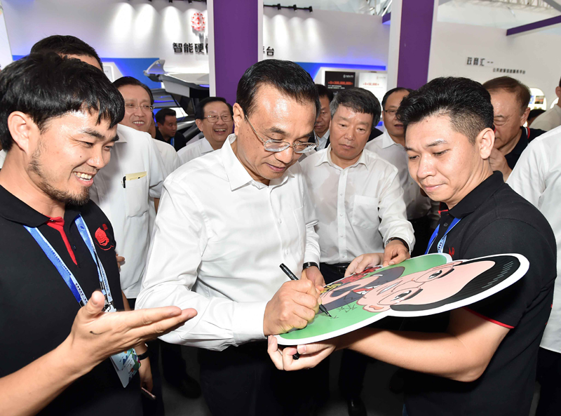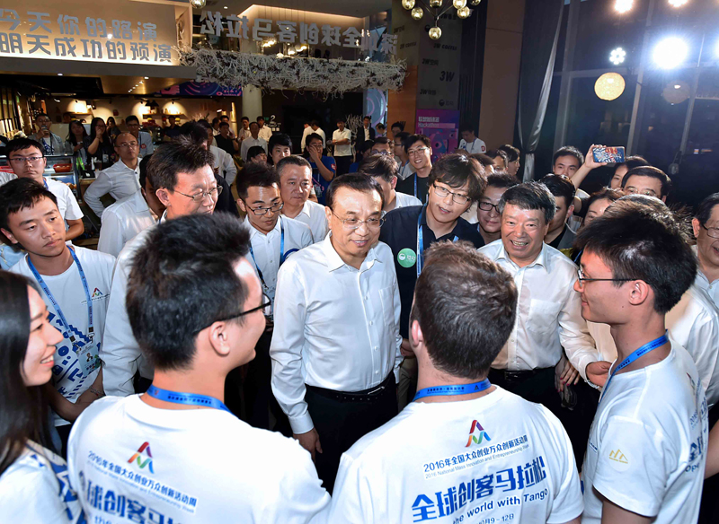 【全國雙創周深圳開展:總理來啦!】李克強12日下午來到深圳灣創業廣場,參觀2016年全國大眾創業萬眾創新活動周相關主題展示。琳瑯滿目的展位展品五花八門,創意十足。展臺負責人爭相向總理介紹他們最新的創業創新成果。總理至少在20多個展臺駐足停留。