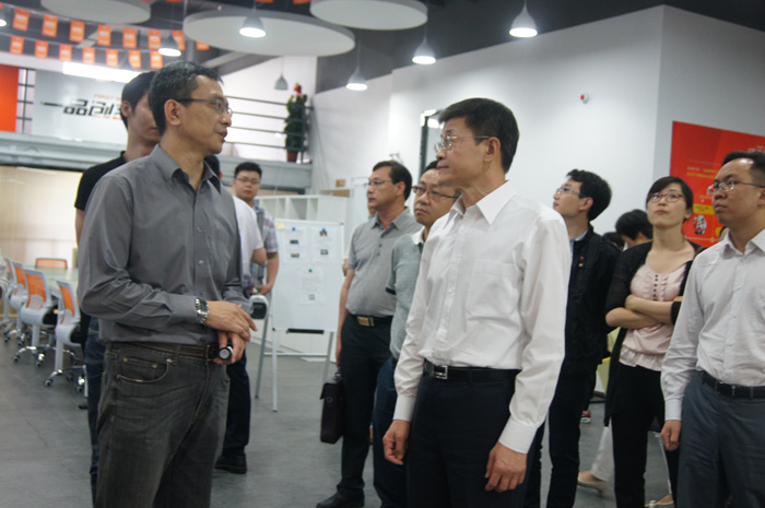 5月10日下午,國臺辦交流局黃文濤局長一行,來到一品創(chuàng)客 海峽兩岸無人機暨智能機器人孵化基地參觀調研。黃文濤局長一行聽取了孵化基地運營情況介紹,并與唐峰科技、九洲眼航空、控智機器人等創(chuàng)業(yè)團隊互動交流。