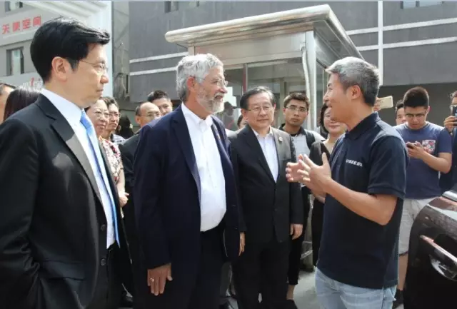 2016年6月7日,美國(guó)總統(tǒng)科技助理兼白宮科技政策辦公室主任John Holdren博士,美國(guó)白宮科技政策辦公室高級(jí)政策顧問(wèn)Mahlet Mesfin,美國(guó)駐華使館科技官員 Dwain Atkinson攜代表團(tuán)一行參觀中關(guān)村創(chuàng)業(yè)大街。全國(guó)政協(xié)副主席、科技部部長(zhǎng)萬(wàn)鋼,科技部火炬中心主任張志宏,北京市科委主任閆傲霜,科技部國(guó)際合作司副巡視員蔡嘉寧,中關(guān)村管委會(huì)國(guó)際化業(yè)務(wù)總監(jiān)曾曉東,創(chuàng)新工場(chǎng)創(chuàng)始人、董事長(zhǎng)李開(kāi)復(fù),馭勢(shì)科技(北京)有限公司聯(lián)合創(chuàng)始人、首席執(zhí)行官(馭勢(shì)無(wú)人駕駛)吳甘沙,科通芯城集團(tuán)及硬蛋科技首席技術(shù)官李世鵬等陪同參觀。海淀置業(yè)總經(jīng)理助理、海置科創(chuàng)董事長(zhǎng)姚宏波,清控科創(chuàng)總裁助理、海置科創(chuàng)執(zhí)行總經(jīng)理聶麗霞等接待了來(lái)訪嘉賓。