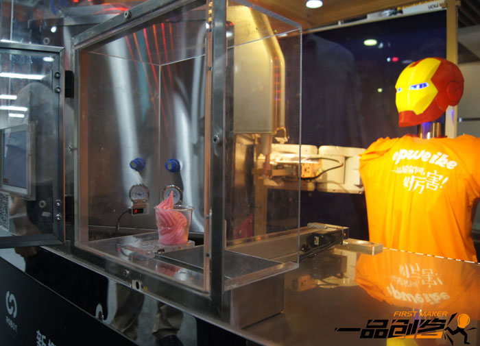 “它比目前市面上常見的送餐‘機器人’相對智能化,可模仿人類的動作,具有高精準度,高準確性等特點。所以,人們購買冰淇淋很簡單,只要在觸摸屏上選擇冰淇淋的種類和口味即可。機器人可以制作總共十多種不同造型的百款冰淇淋。”