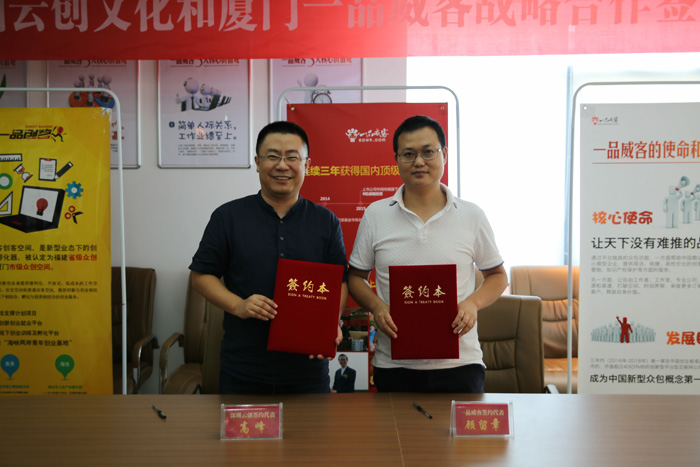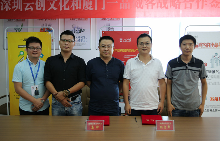 又一重量級服務商加入一品威客網!7月29日下午,深圳云創文化與一品威客網在廈門舉行了簽約儀式。接下來,雙方將通過緊密的合作,打造雙贏、可持續發展的戰略合作伙伴關系,充分發揮各自優勢,為用戶提供更好的產品及服務。