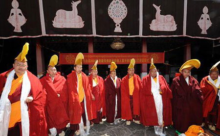 Eleven Tibetan Buddhists received the "Tho Ram Pa" degree, one of the highest academic degrees for the Tibetan Buddhism on Monday. (Xinhua File Photo)
