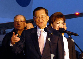 Lien left for Fujian Province after attending a cross-Straits economic and trade forum held in Beijing from April 14 to 15.