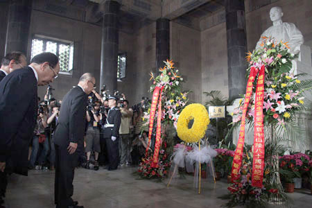 "Dr. Sun has left the Chinese nation a spiritual legacy," he said, "His call to rejuvenate the Chinese nation is the common goal for us (people from both sides of the Taiwan Straits) to strive for."