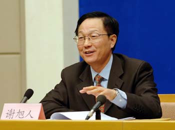 Xie Xuren, director of the State Administration of Taxation, gives a press conference sponsored by the State Council Information Office, Beijing, Jan.17,2006.[Xinhua Photo]
