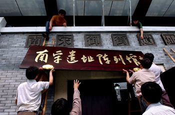 Workers put up tablet for the gallery of imperial street site of China's South Song Dynasty(1127-1279 AD) in Hangzhou, capital of east China's Zhejiang Province, June 9, 2006. The gallery will be open to public on June 10, China's first "Cultural Heritage Day".[Xinhua Photo]