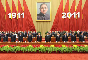 The conference to commemorate the centennial of the 1911 (Xinhai) Revolution is held at the Great Hall of the People in Beijing, capital of China, Oct 9, 2011.BEIJING - China held a grand ceremony to commemorate the centennial anniversary of t...