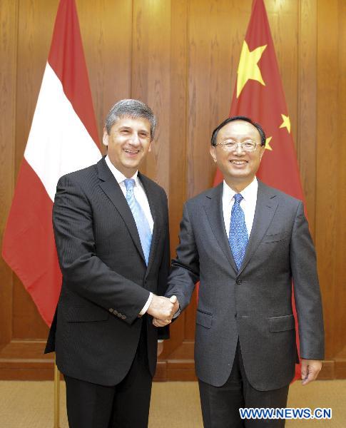 BEIJING - Chinese Foreign Minster Yang Jiechi and his Austrian counterpart Michael Spindelegger held talks here on Tuesday, pledging to enhance bilateral ties through deeper cooperation.