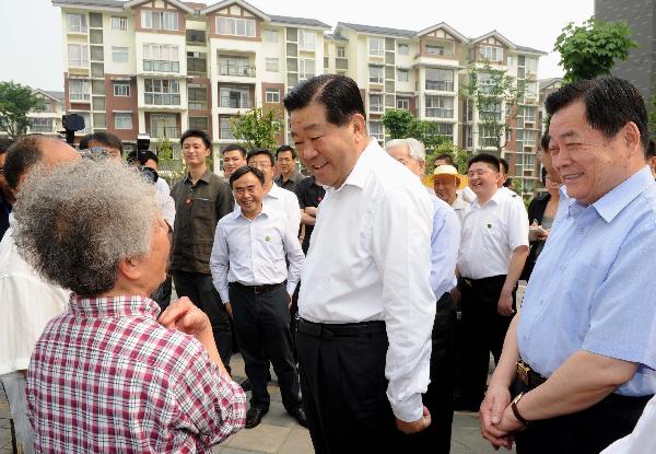 Jia also visited a community in Dujiangyan City to learn about the reconstruction and the distribution of apartments for earthquake victims who had lost their families and homes when Sichuan was hit by a magnitude-8.0 earthquake in May 2008. The quake left 80,000 people dead or missing.