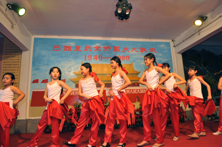 Girls perform during a celebration held for the 60th anniversary of the founding of the People's Republic of China (PRC), in Rio de Janeiro, Brazil, Sept 13, 2009. The celebration, held by the Culture Association of Chinese in Rio de Janeiro, attracted more than 1,500 overseas Chinese. (Xinhua/Song Weiwei)