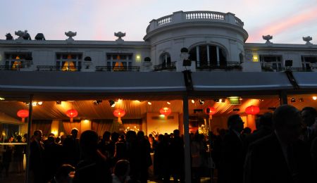 Guests are silhouetted against lights during a reception held at a garden in Paris, capital of France, on Sept. 28, 2009. About 2,000 French guests and overseas Chinese in France gathered here on Monday to attend the reception held by the Chinese Embassy in France to celebrate the 60th anniversary of the founding of the People's Republic of China. (Xinhua/Shang Xu)