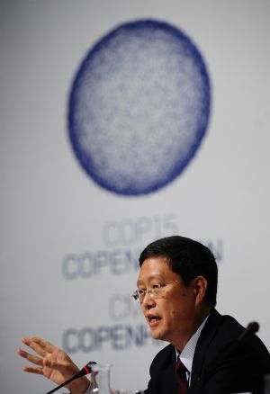 China's Vice Foreign Minister He Yafei addresses a press conference during the high-level segment of the United Nations Framework Climate Change Conference in Copenhagen, capital of Denmark, Dec. 17, 2009. (Xinhua/Zeng Yi)