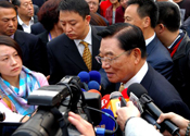 Chiang Pin-kung answers reporters questions in Tianjin