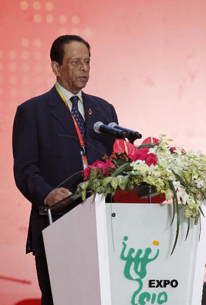 Mauritian President Anerood Jugnauth delivers a speech during a ceremony celebrating the National Pavilion Day of Mauritius at the 2010 World Expo in Shanghai, east China, Sept. 1, 2010. (Xinhua/Liu Ying)