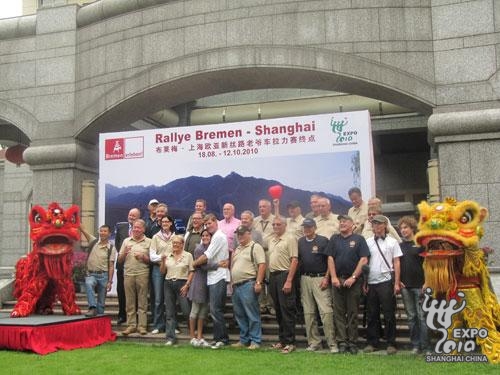 A fleet of 13 old cars with 26 people traveled all the way to Shanghai yesterday from Germany's Bremen.