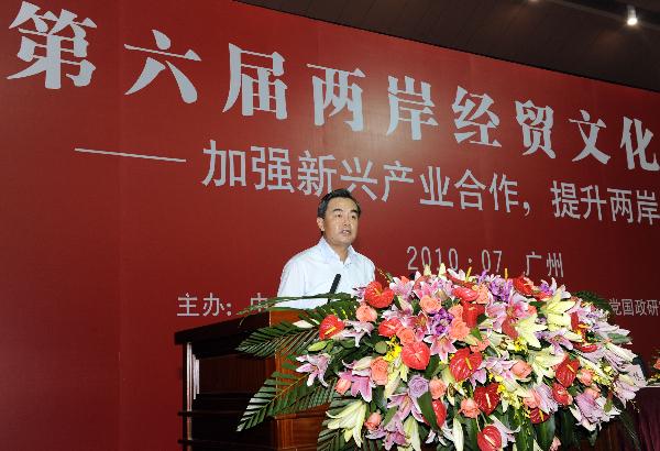 Wang Yi, director of the Taiwan Work Office of the Communist Party of China Central Committee, presides over the opening ceremony of the sixth Cross-Strait Economic, Trade and Culture Forum in Guangzhou, south China's Guangdong Province, July 10, 2010. (Xinhua/Guo Lei)