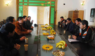 2010年2月12日,駐阿富汗大使鄭清典在使館政務(wù)參贊尹巨明、商務(wù)參贊仵剛晨的陪同下,冒著恐怖襲擊的危險(xiǎn)走訪新華社喀布爾分社、中冶集團(tuán)、中鐵十四局、中興通訊和華為技術(shù)公司,親切慰問在喀布爾留守的中資機(jī)構(gòu)員工。