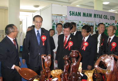 葉大使對云南會館為旅緬華人華僑中小企業搭建商業與經濟交流的平臺,凝聚鄉情,體現互助互利精神的做法表示贊賞,同時鼓勵大家更多地與中國企業開展交流,為中國—東盟自由貿易區的運作與順利實施作出貢獻。葉大使還在云南會館全體理監事的陪同下,饒有興趣地參觀了部分展品。