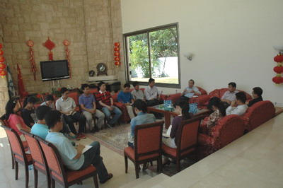 2010年5月3日,“五四”青年節(jié)前夕,中國駐以色列使館舉行一年一度的大使與青年同志座談會,趙軍大使在官邸與全館全體青年同志親切座談。
