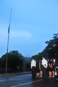 2010年8月15日清晨,中國駐新加坡大使館為甘肅舟曲特大山洪泥石流遇難同胞下半旗志哀。