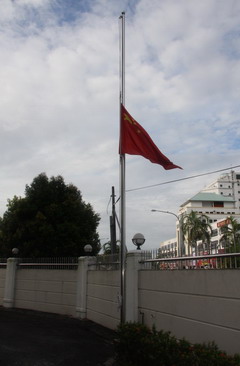 2010年8月15日,中國駐古晉總領館舉行下半旗儀式,向甘肅舟曲特大山洪泥石流遇難同胞表示深切哀悼。當天,總領館全體館員及家屬衣著樸素,停止一切公共娛樂活動,同全國人民一道沉痛悼念舟曲遇難同胞。
