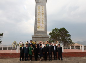 清明節前夕,駐老撾使館組織前往老撾川壙省、烏多姆賽省祭掃中國烈士陵園。