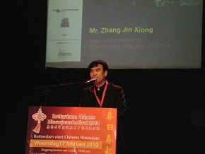 張參贊在上述活動中代表張軍大使發表新年祝辭,對出席活動的華人同胞和荷蘭朋友送上了虎年新春祝福。張參贊回顧了2009年中國取得的舉世矚目的發展成就和中荷關系發展情況,相信2010年上海世博會將為中國與世界交往和中荷關系發展提供新的契機和亮點。張參贊希望阿姆斯特丹和鹿特丹等城市在促進中荷交往中繼續發揮重要作用,并在不斷發展的中荷關系中獲得新的發展機遇。