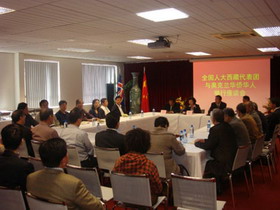 向巴平措主任介紹了十一屆全國人大三次會議和中央第五次西藏工作座談會情況、西藏目前的經濟社會發展形勢,以及代表團此次訪問澳大利亞和新西蘭首都惠靈頓的情況,高度評價奧克蘭華僑華人在反對達賴竄訪新西蘭、向當地政府及各界宣傳西藏所做的工作,感謝當地僑胞關心支持西藏發展建設,希望各位僑界代表多為西藏的經濟社會發展建言獻策。